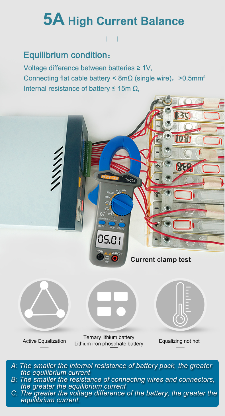 When the cell voltage of the battery pack is too high, it will not be fully charged, and if the cell voltage is too low, it will be powered off for protection. The protection board does not support series connection with the protection board.